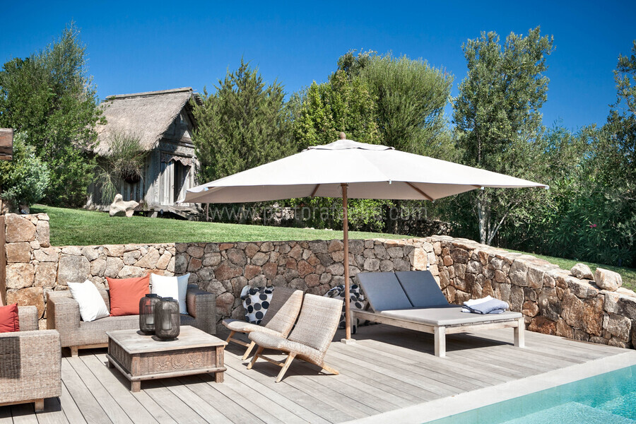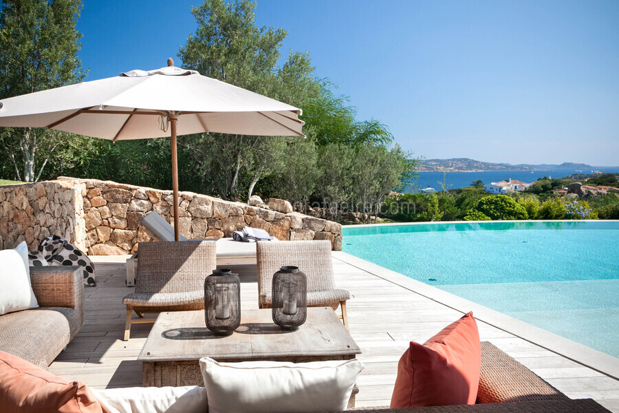 - Infinity pool with sun deck, sunbeds, sofas and umbrella
